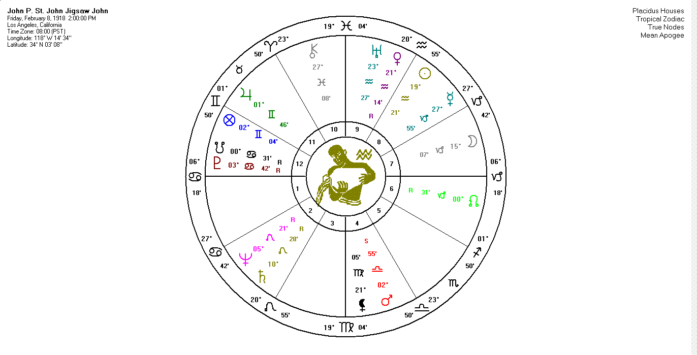 Five of John St. John planets were in fixed signs. This shows he was quite stubborn. Aquarians believe in telling the truth. He had a stellium there. That trait would have been amplified.