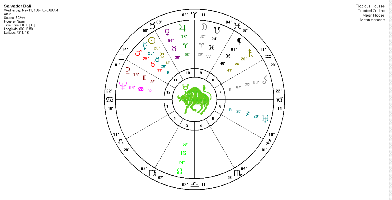Dali had a Cancer Ascendant. Cancer has an arty side. Dali had Neptune in the 12th House. This is good for creative work. (102)
